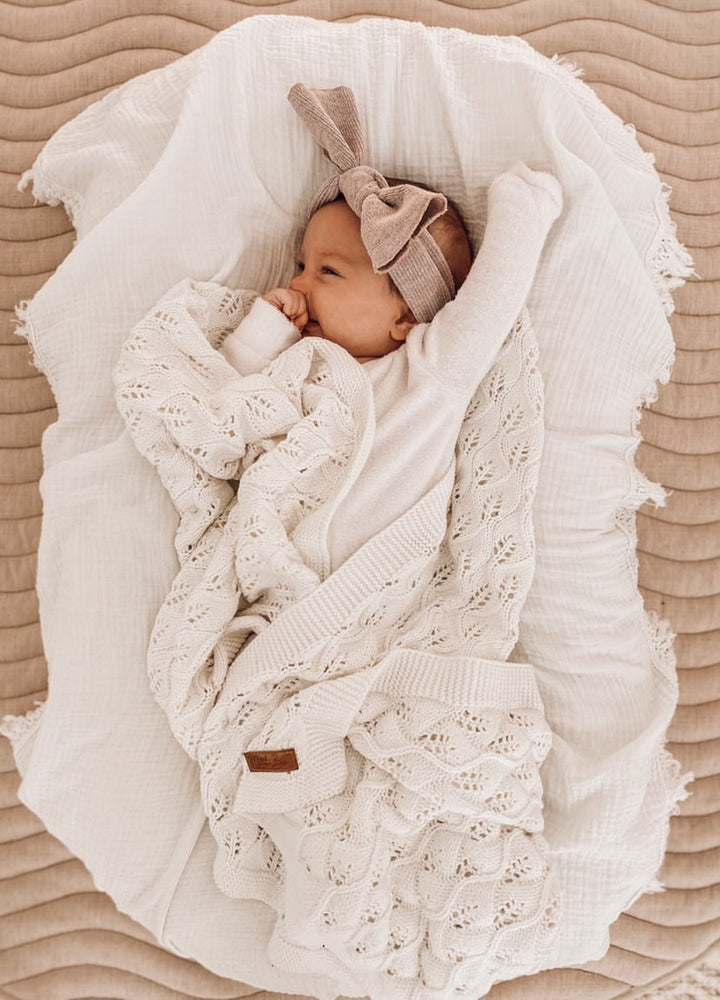 Our unique & luxurious keepsake knitted blankets are the perfect piece to add to your little one's knitted collection. Our Woodlands blanket is a beautiful soft & stretchy blanket to announce the birth of your precious bundle of love, or a beautiful keepsake gift for an expecting mum. Our unique pattern makes this blanket a stand out accessory for every picture perfect moment.