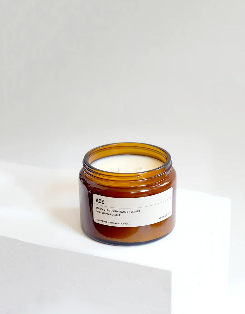 ACE: Tobacco Leaf / Cedarwood / Vetiver Large Amber Candle