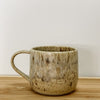 Handmade ceramic mug with a golden cacao glaze & geometric handle which fits perfectly in hand.