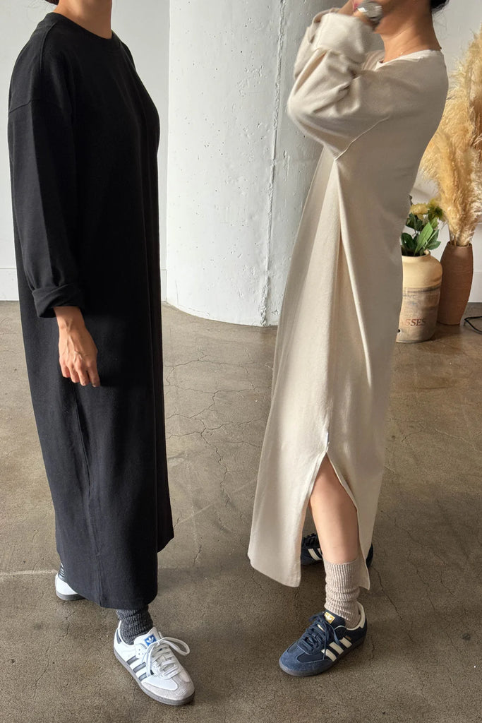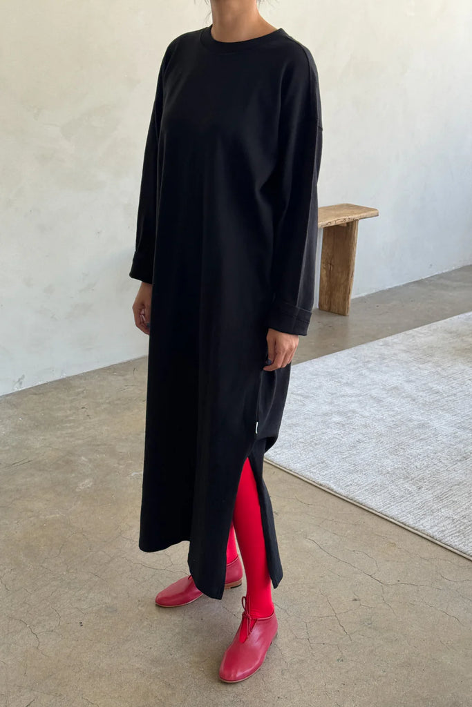 An ode to two of our bestsellers, Sunday Tee and Her Dress, Sunday Dress is the pinnacle of comfort and style. Tastefully blending the masculine with its menswear inspired fit and the feminine with a subtle yet playful high side slit and ankle length, she will quickly become another closet staple! Sleeves are wide enough to roll up!