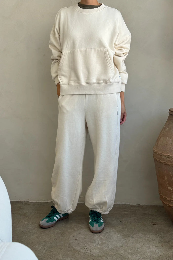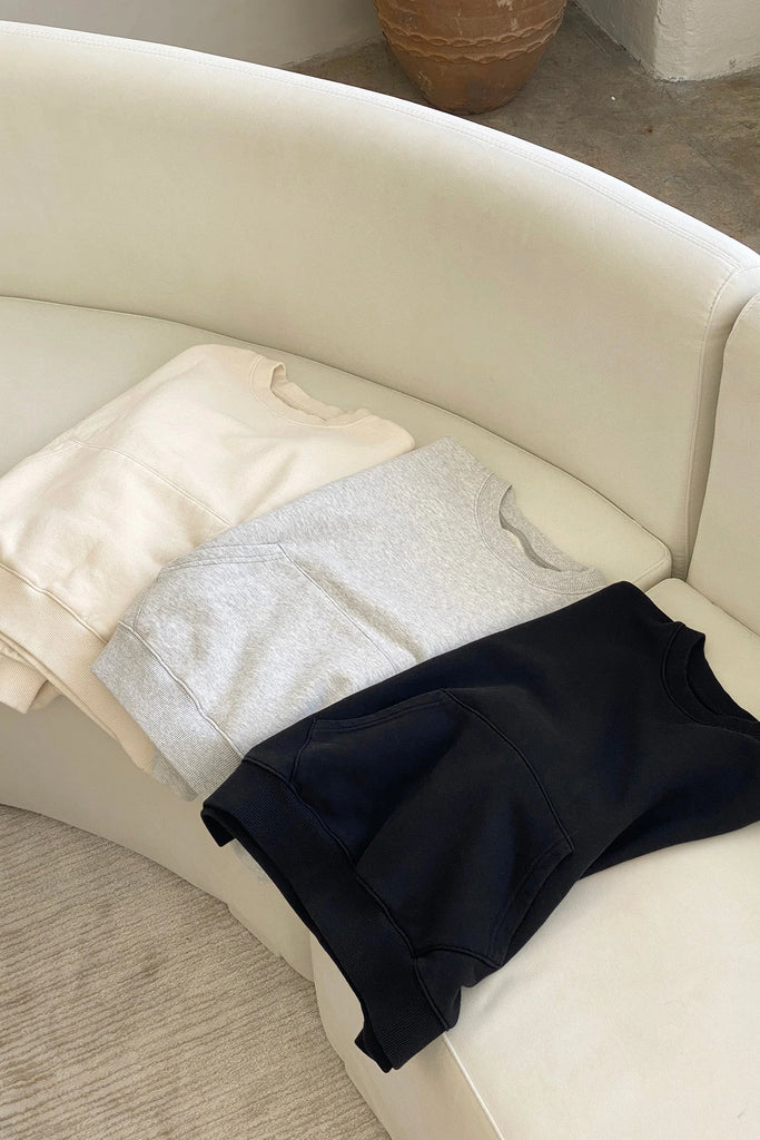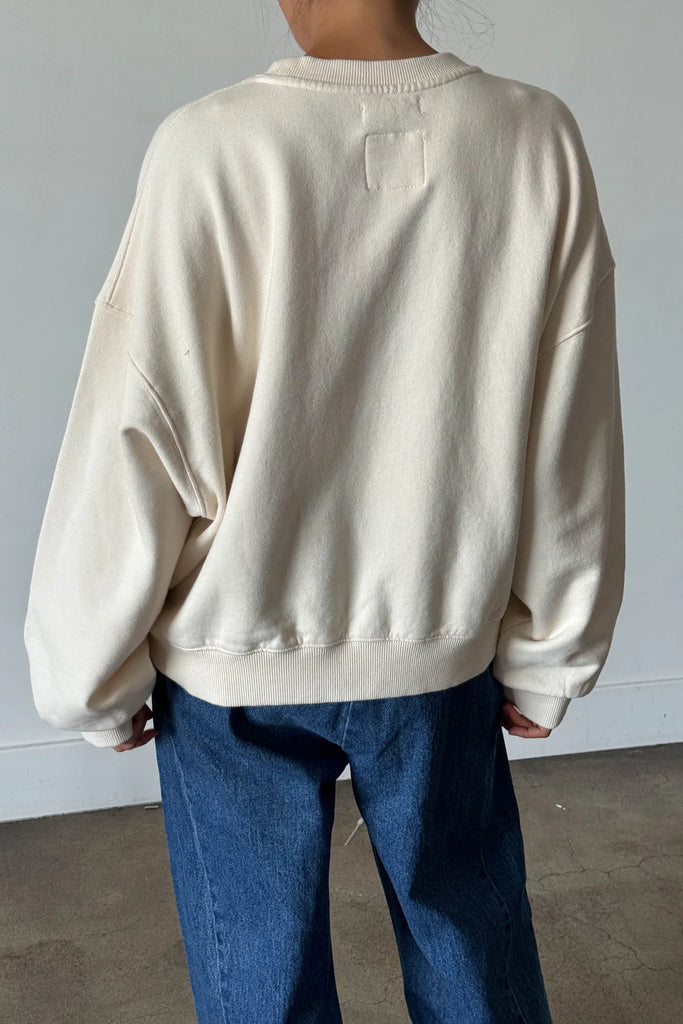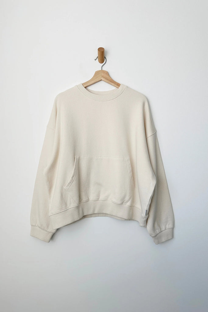 In our quest for the coziest sweatshirts, behold this perfectly oversized classic crewneck sweatshirt crafted from the softest cotton French terry! It even boasts a dainty little kangaroo pocket for that extra dash of charm, perfect for a sporty or loungewear vibe.
