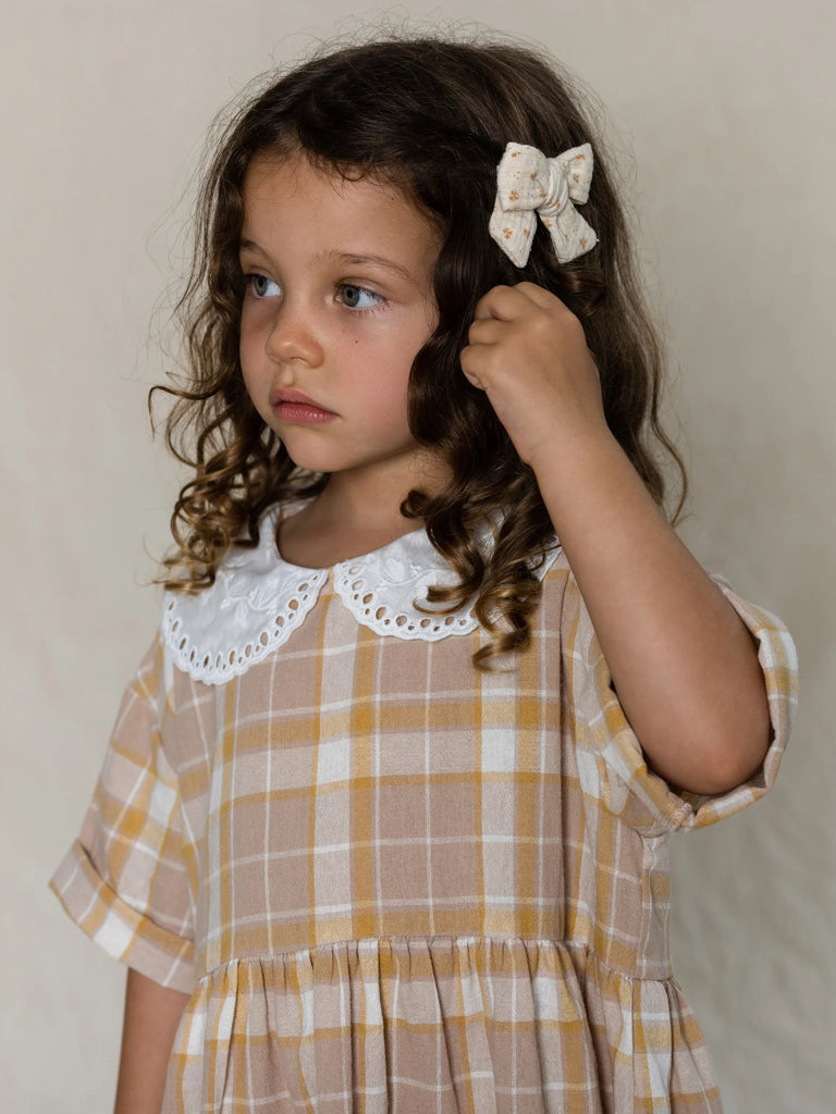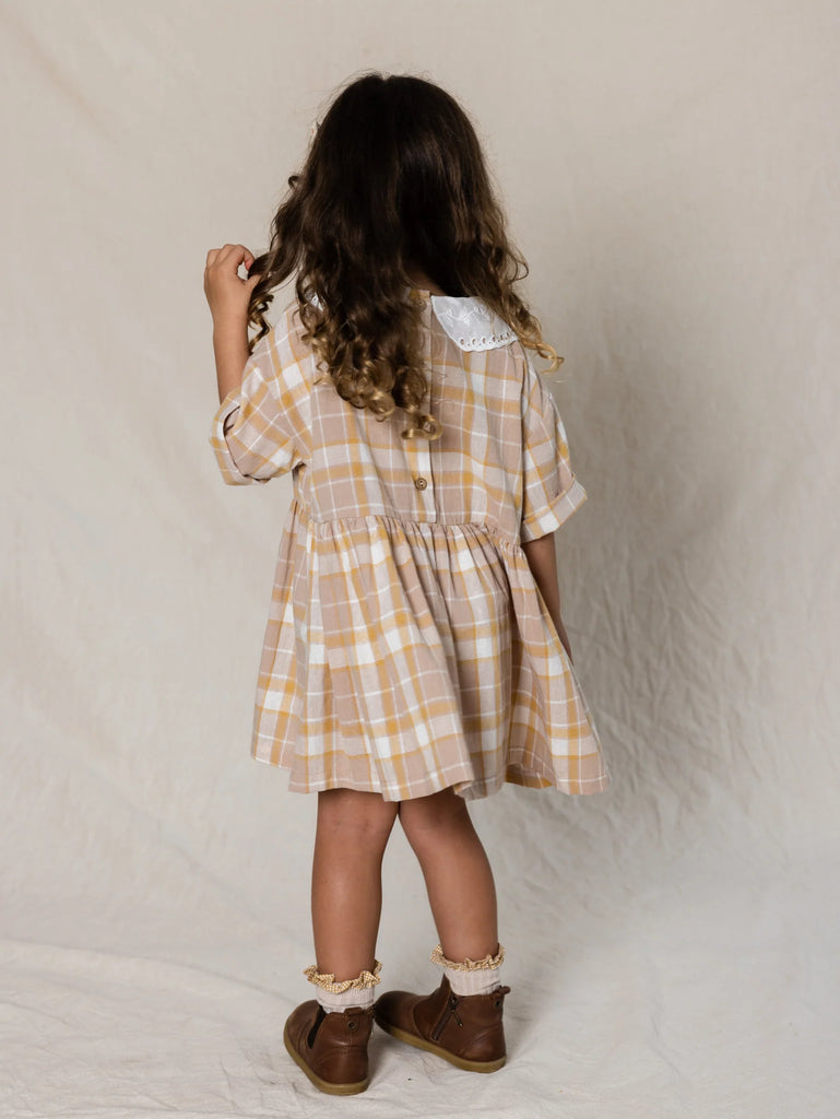 This transeasonal piece can be layered up with beautiful collar detail popped over a knit, and is versatile for everyday play and a special occasion.