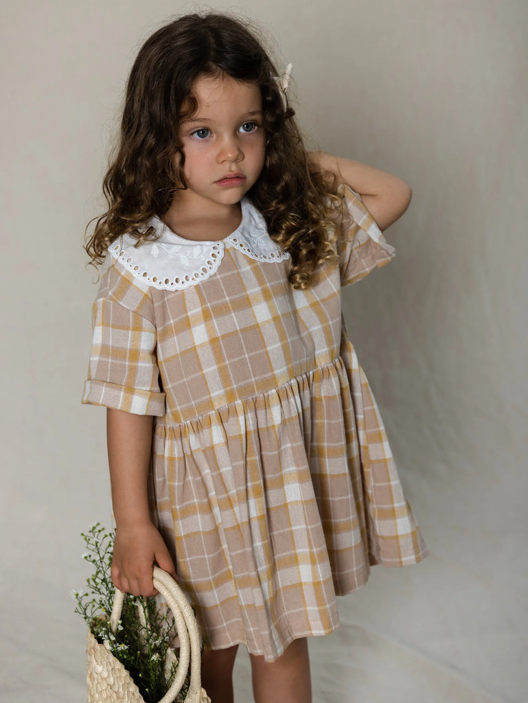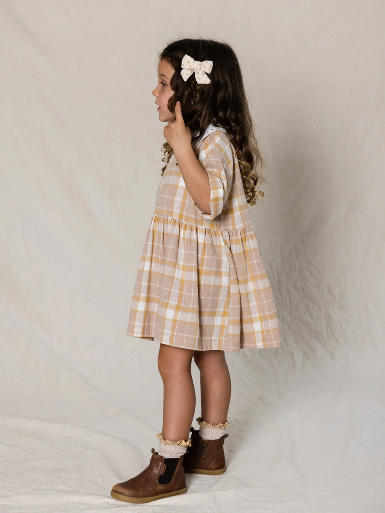 This transeasonal piece can be layered up with beautiful collar detail popped over a knit, and is versatile for everyday play and a special occasion.