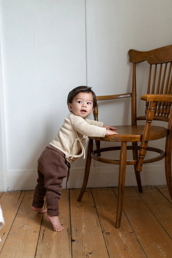 Our beloved best-selling Poet Jumper is back in two different colourways; soft Biscuit and effortless Cocoa. Crafted from an organic cotton knit, this layering essential offers a functional wrap design, tie side detail and long fitted sleeves. We love this paired back with the matching Poet Pants.